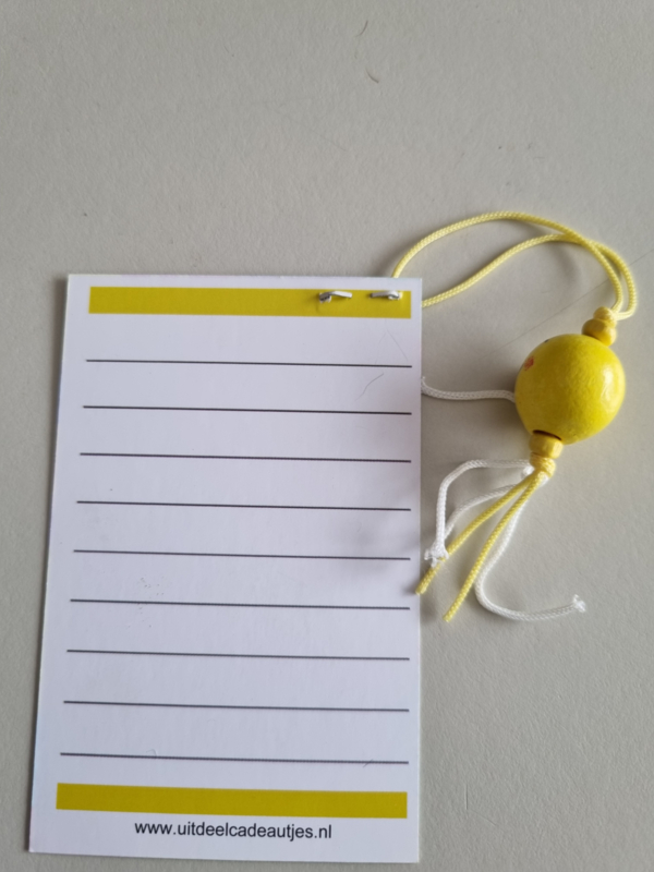 Aan het kaartje hangt een vrolijk houten smiley bolletje assorti geleverd.